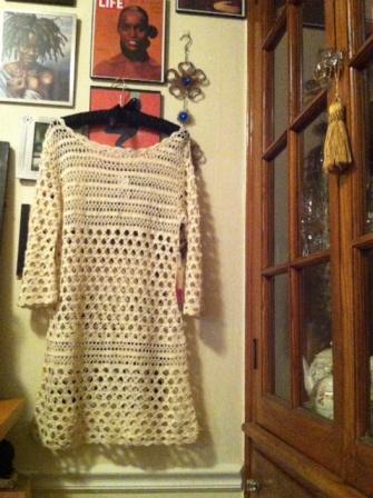 The crochet dress would be perfect in the spring over skinny coloured jeans and some high-heeled wedges or worn with a vintage slip underneath in the summer (you could wear same wedges or some flats). One of the other reasons I bought it; was because I’m in the business of creating crochet items for my boutique, Maylana’s Closet www.maylana.com, and I want to see if I can replicate it at some point. It’s your basic shell stitch, it’s just a matter of figuring out stitch count, joining etc, but I digress…