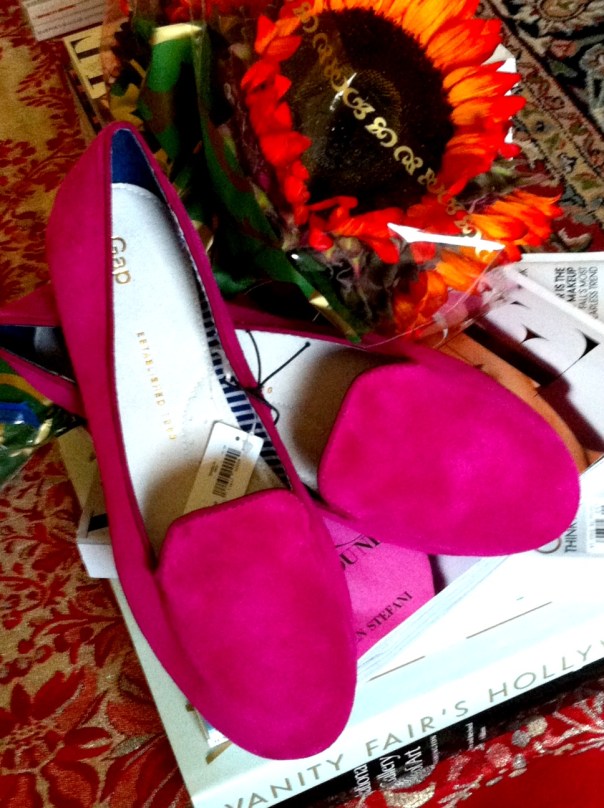 Today I went for my usual biweekly hair cut, and decided to stop in The Gap; I’m glad I did! I found these cute fuchsia suede flats above for $39.95 and with my 40% off coupon, I got them for a steal. I was happy as a clam after that! I’m loving the ad with principal ballet star, Yuan Yuan Tan of the San Francisco Ballet; that’s quite a pose she’s striking there.