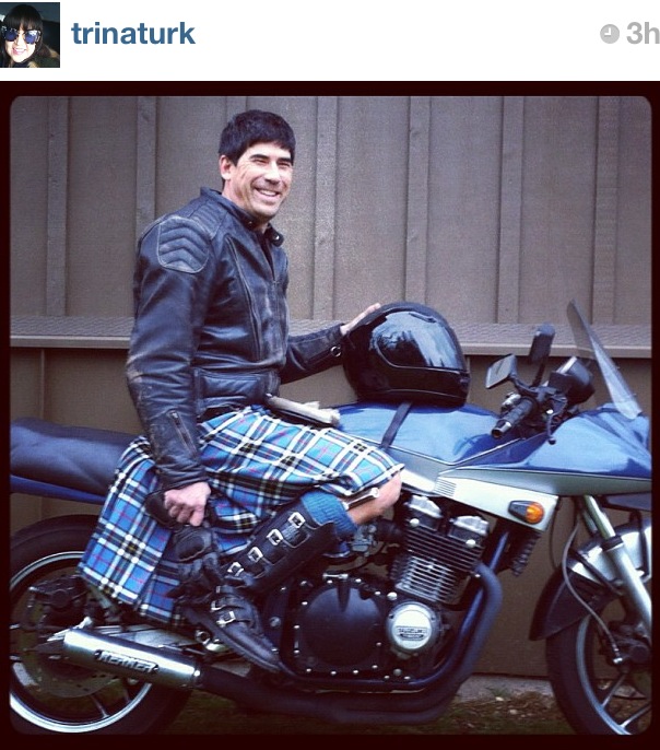 The designer Trina Turk is now following me on Instagram and I promised I’d post this pic of her brother Carter,  who is wearing a kilt for the Ronald McDonald House Charities  (RMHC) event, “Men In Kilts“.  I actually think he looks quite dashing in his kilt while straddling a motorcycle!  Men in Kilts is an important element to McDazzle 2012, which is a red tie event to be held in  Kentucky in September.