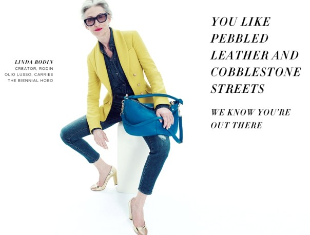 I had to post this shot of Linda Rodin from the J. Crew 2012 fall campaign, who is still fierce at 63 years old!  ~ Stylist turned beauty guru, still modeling, running a successful skin care line for mature women, among other things.  I love this quote from her “You can’t chase youth. You’ll just look older with a face lift.” How true!