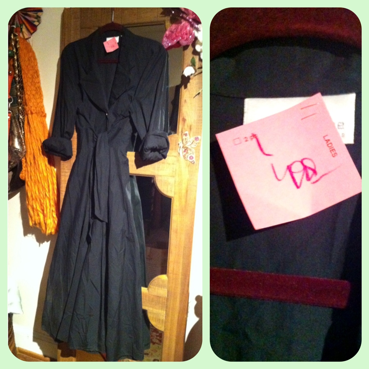 I also found this gorgeous Liz Claiborne ankle length coat dress for under $5!! I have not been a fan of Liz Claiborne for a number of years now, but this dress was too fantastic to resist. I’m going to wear this unbuttoned up to the thigh with shorts underneath, cinched at the waist with ankle strap flats or high heels depending on my mood, and then paired with a colourful clutch. Very 50’s.