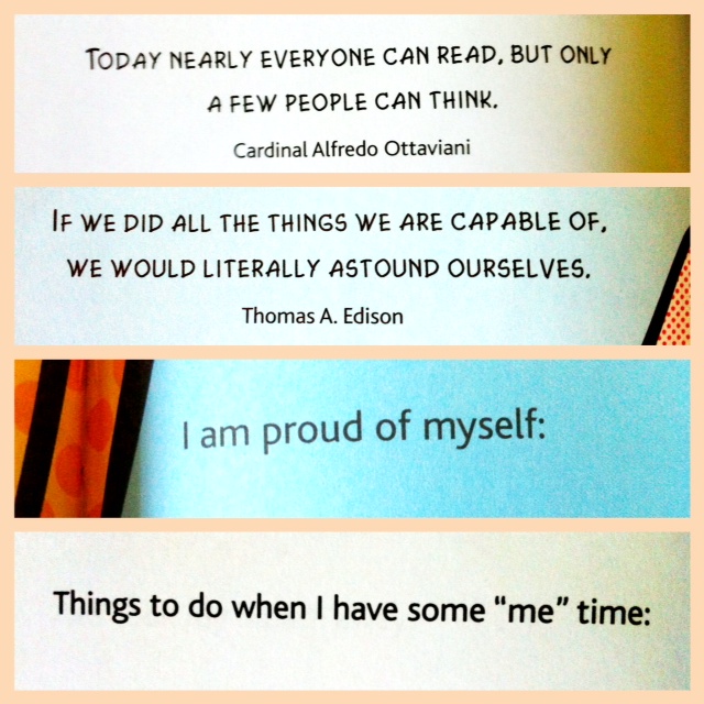 While on my travels I came across the cute journal above, which was on sale for 3.99!!  I actually picked it up because I liked the pop-art cover and really thought it was a novel of some kind (the title really attracted me). I was pleasantly surprised to find out, it was an actual journal and the icing on the cake were the quotes within: