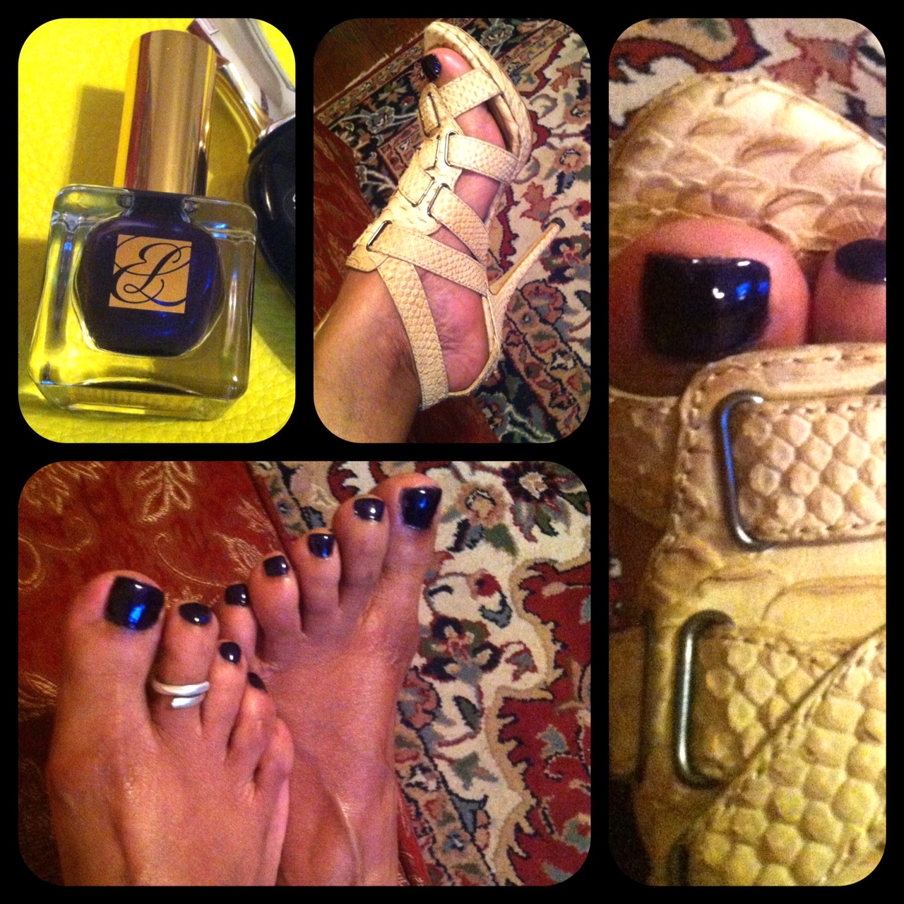 Part of my weekend was spent pampering myself, so I decided to give myself a pedicure. Color used was Estee Lauder Béte Noire ,{dark purple} with Sally Hansen Diamond Flash Top coat. {Sandals are by Zara, circa 2009} Ladies, pampering yourselves on a regular basis, is conducive to your well-being, it’s a must!♥