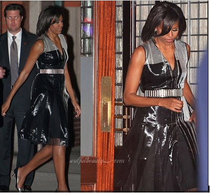 Original post – At the doctor’s office staring at a blank wall so I decided to post this. Here’s the First Lady rocking her Reed Krakoff dress at a fundraiser which was held at the Greenwich Hotel in my favourite city, NYC. she looks gorgeous as always.